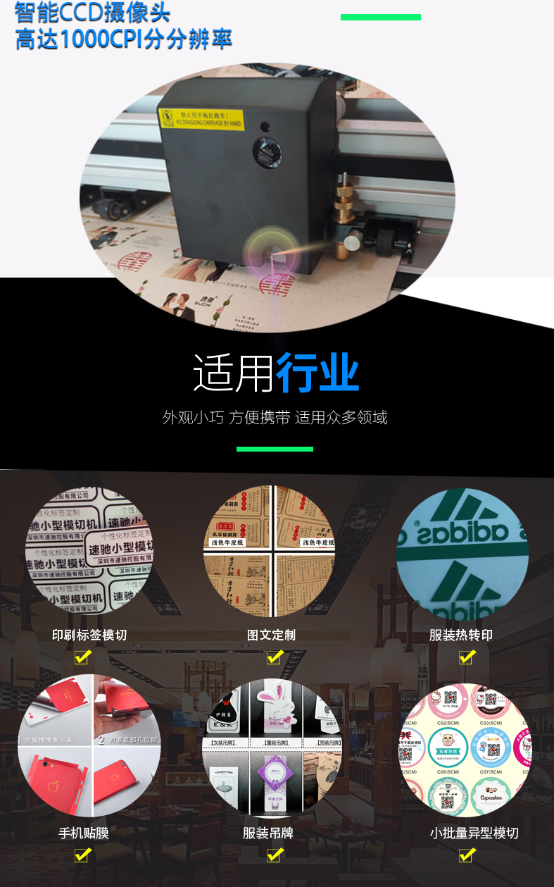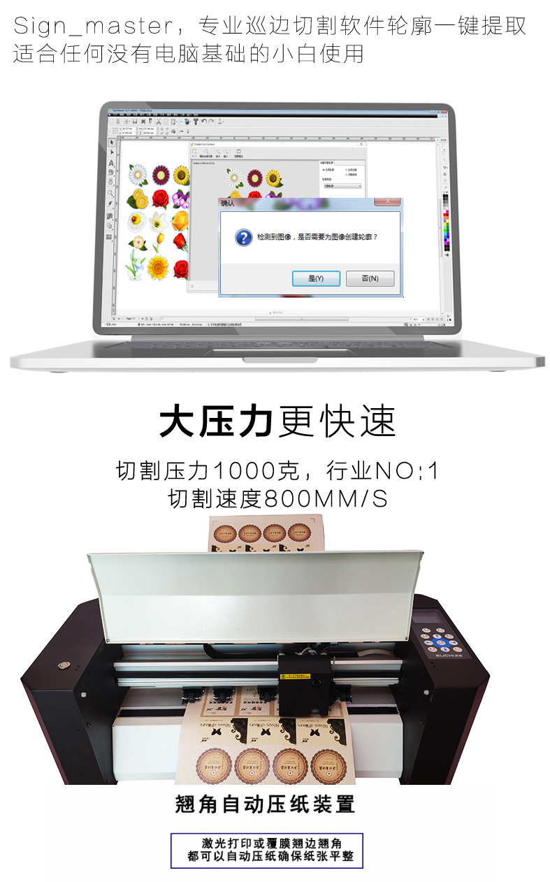 - 速馳單張連續(xù)進(jìn)紙模切機(jī),適用于圖文印刷小批量標(biāo)簽?zāi)G行袠I(yè),無(wú)需刀模,CDR排好版就可以切割