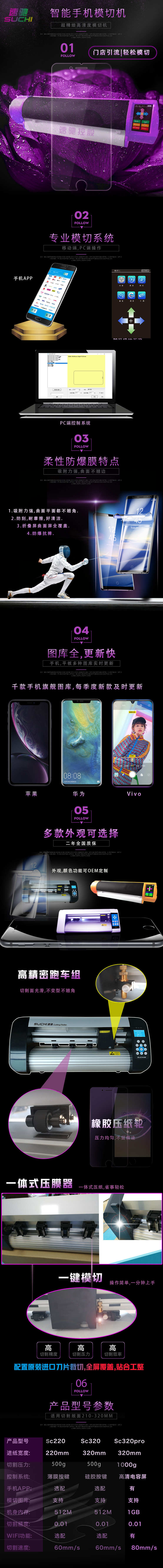 - 速馳手機膜切機是一款專業(yè)為手機美容行業(yè)定制的高品質(zhì)模切機,性價比較云智印或大秦等模切品牌具有一定優(yōu)勢,整機質(zhì)保二年,可提供APP或手機數(shù)據(jù)文件.